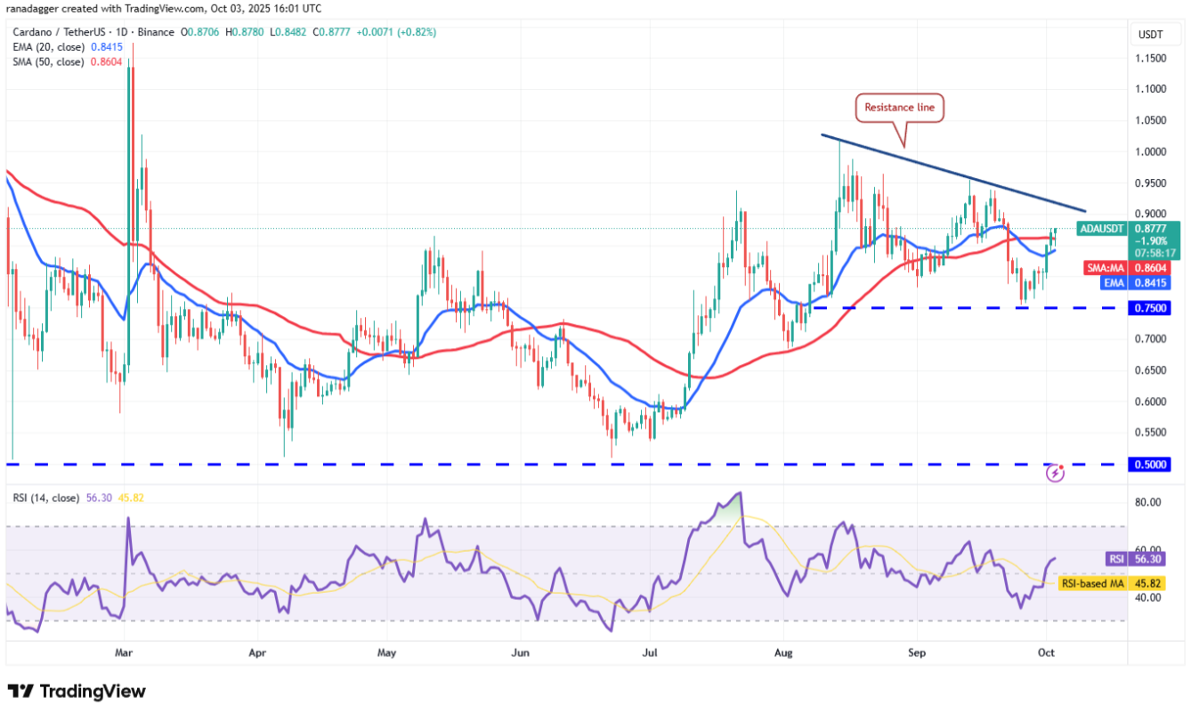 Giá Cardano (ADA) đã tăng trở lại trên đường SMA 50 ngày (0,86 USD) vào ngày thứ Năm, cho thấy áp lực bán đang suy giảm.