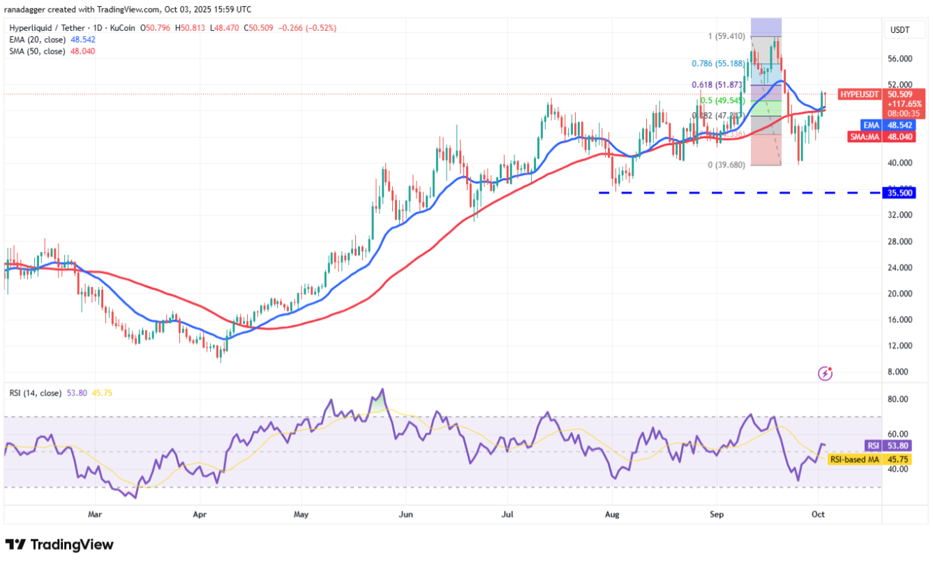 Hyperliquid (HYPE) đã bứt phá vượt trên các đường trung bình động vào thứ Năm, cho thấy lực mua mạnh xuất hiện ở vùng giá thấp.