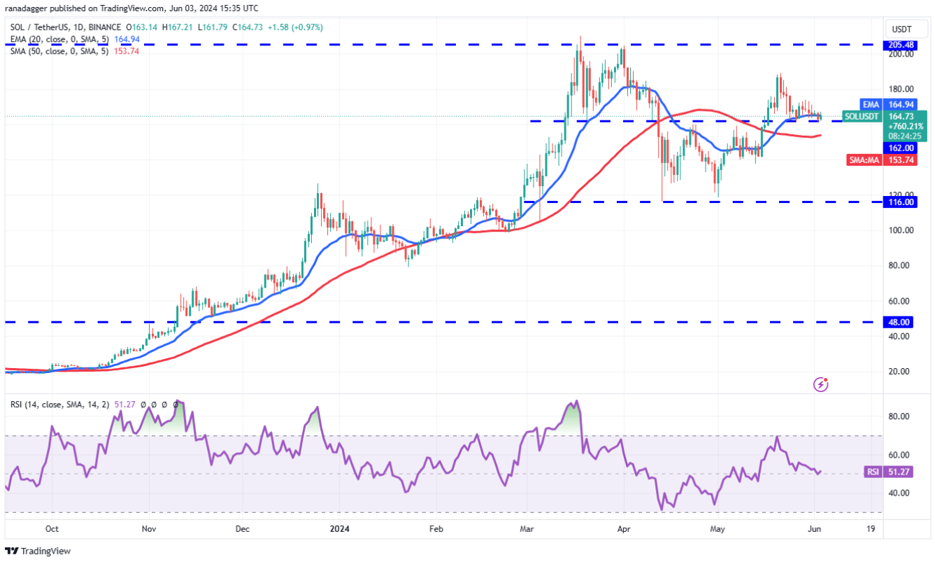 Nếu phe gấu thắng thế và đẩy giá xuống dưới $162, cặp SOL/USDT có thể giảm xuống SMA 50 ngày ($153). Mức này có thể đóng vai trò là ngưỡng hỗ trợ nhỏ nhưng có khả năng bị phá vỡ. Sau đó, cặp tiền này có thể trượt xuống $140.