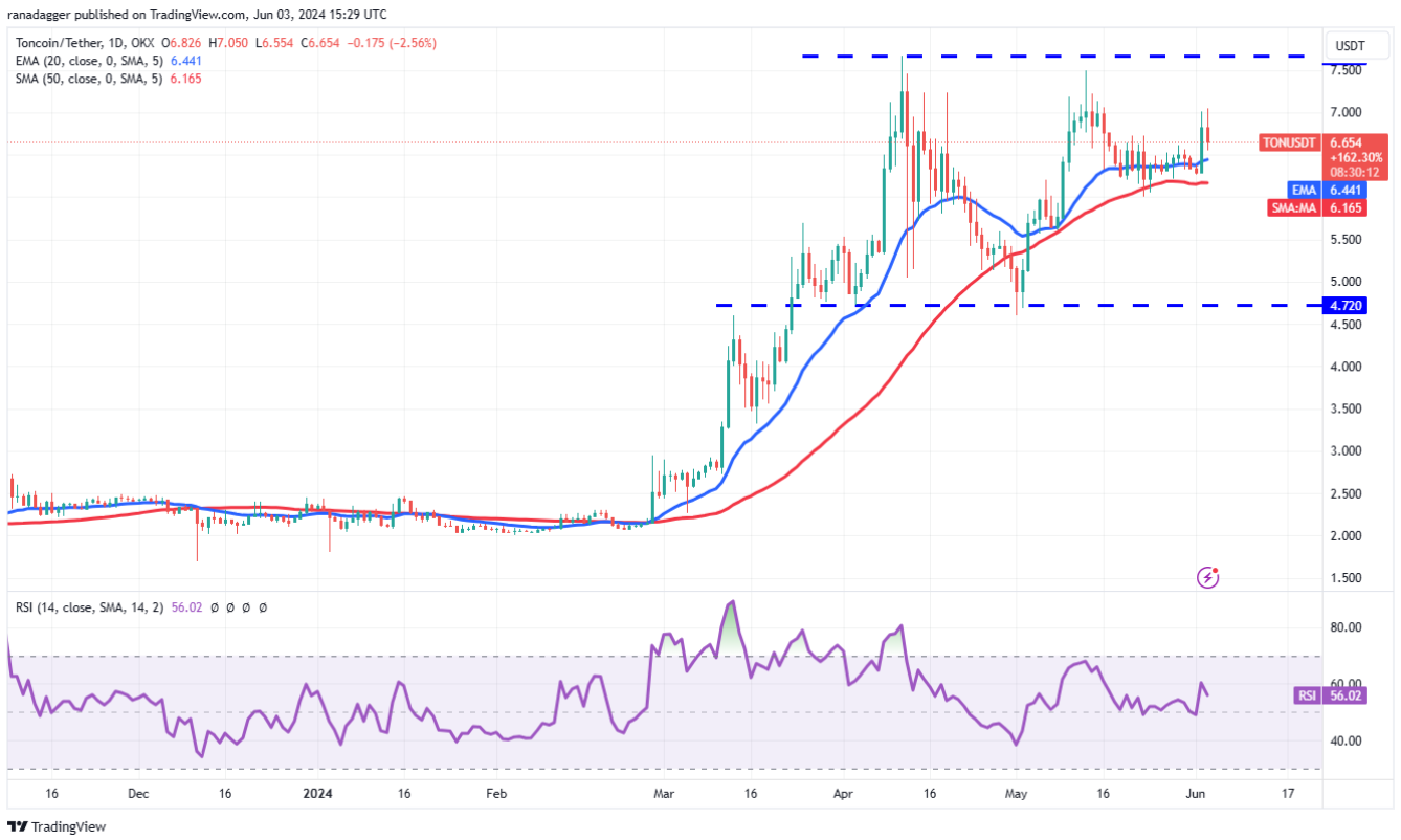 Toncoin (TON) đã tăng mạnh vào ngày 2 tháng 6 và vượt qua mức kháng cự gần nhất ở $6,73, báo hiệu một lợi thế nhỏ cho phe bò.