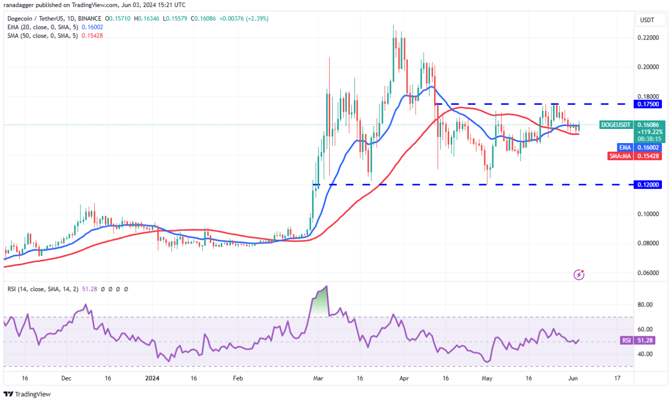 Ngược lại, nếu giá giảm từ $0,18, điều này sẽ báo hiệu rằng phe gấu đang hoạt động ở các mức cao hơn. Điều đó có thể khiến cặp DOGE/USDT bị kẹt giữa $0,18 và SMA 50 ngày thêm một thời gian. Nếu giá phá vỡ xuống dưới SMA 50 ngày, lợi thế ngắn hạn sẽ nghiêng về phe gấu. Sau đó, cặp tiền này có thể giảm xuống mức $0,14.