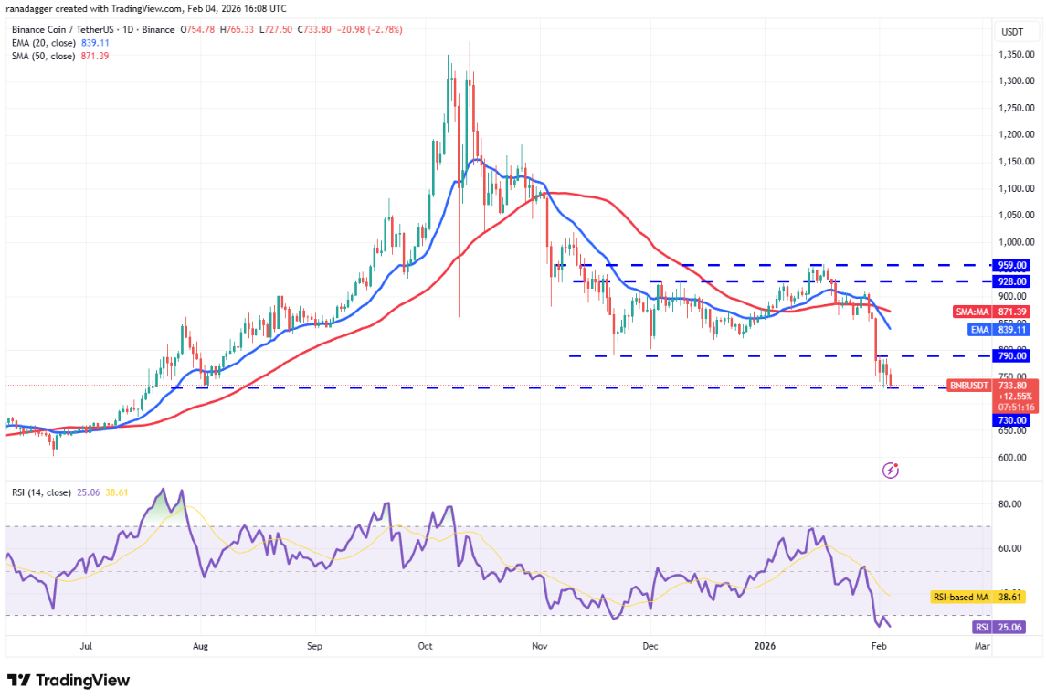 BNB (699,60 USD) tiếp tục giao dịch dưới mốc 790 USD, làm gia tăng nguy cơ giảm xuống dưới vùng 730 USD.