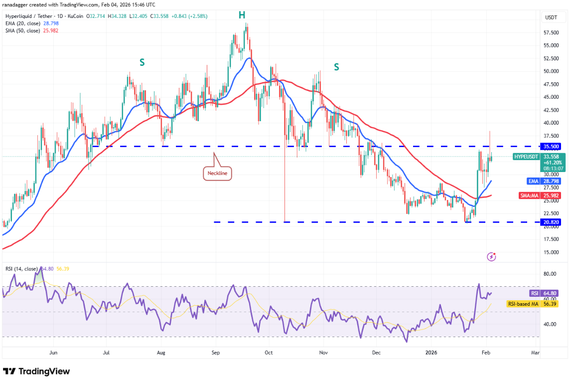 Hyperliquid (HYPE) đã vượt qua ngưỡng kháng cự 35,50 USD vào thứ Ba. Tuy nhiên, bóng nến dài cho thấy áp lực bán mạnh xuất hiện ở vùng giá cao.