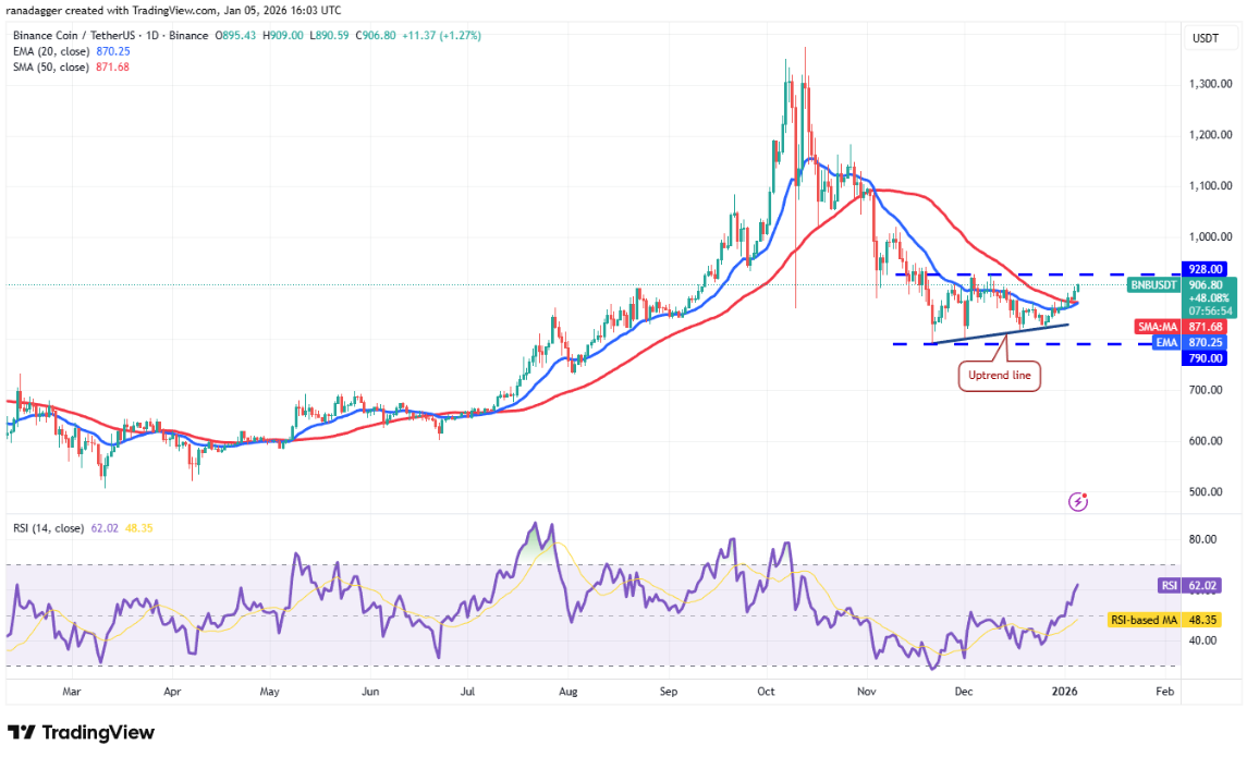 BNB tiếp tục tiến sát mốc 928 USD sau khi bứt phá lên trên các đường trung bình động vào thứ Sáu.