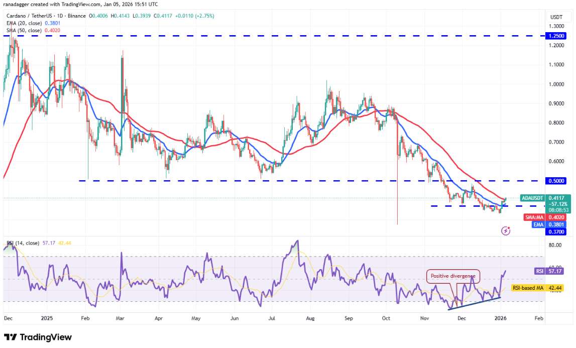 Đợt phục hồi của Cardano (ADA) đã vượt lên trên đường SMA 50 ngày (0,40 USD), cho thấy nhu cầu mua vào từ phe bò vẫn duy trì ổn định.