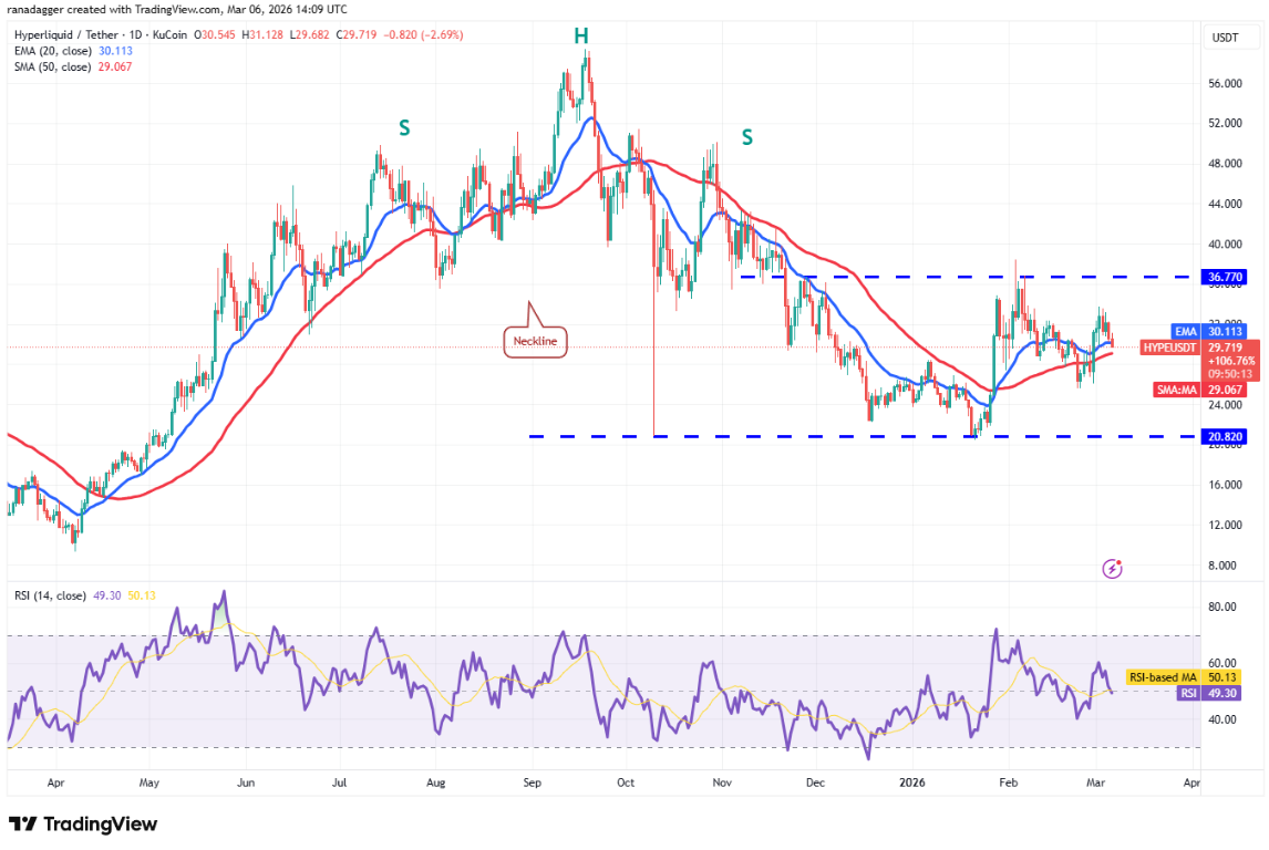 Đường EMA 20 ngày (69.003 USD) là vùng hỗ trợ quan trọng ở phía dưới. Nếu giá bật tăng từ đường EMA 20 ngày, phe bò sẽ tiếp tục cố gắng phá vỡ 74.508 USD. Nếu thành công, cặp BTC/USDT có thể tăng lên 84.000 USD, cho thấy BTC có thể đã tạo đáy tại 60.000 USD.