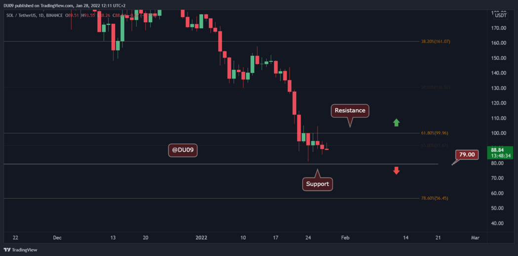 Sắp tới, SOL có cơ hội tốt để ngăn chặn xu hướng giảm ở mức hỗ trợ 79 đô la. Sau đó, nếu người mua quay trở lại thị trường, giá có thể cố gắng phục hồi.