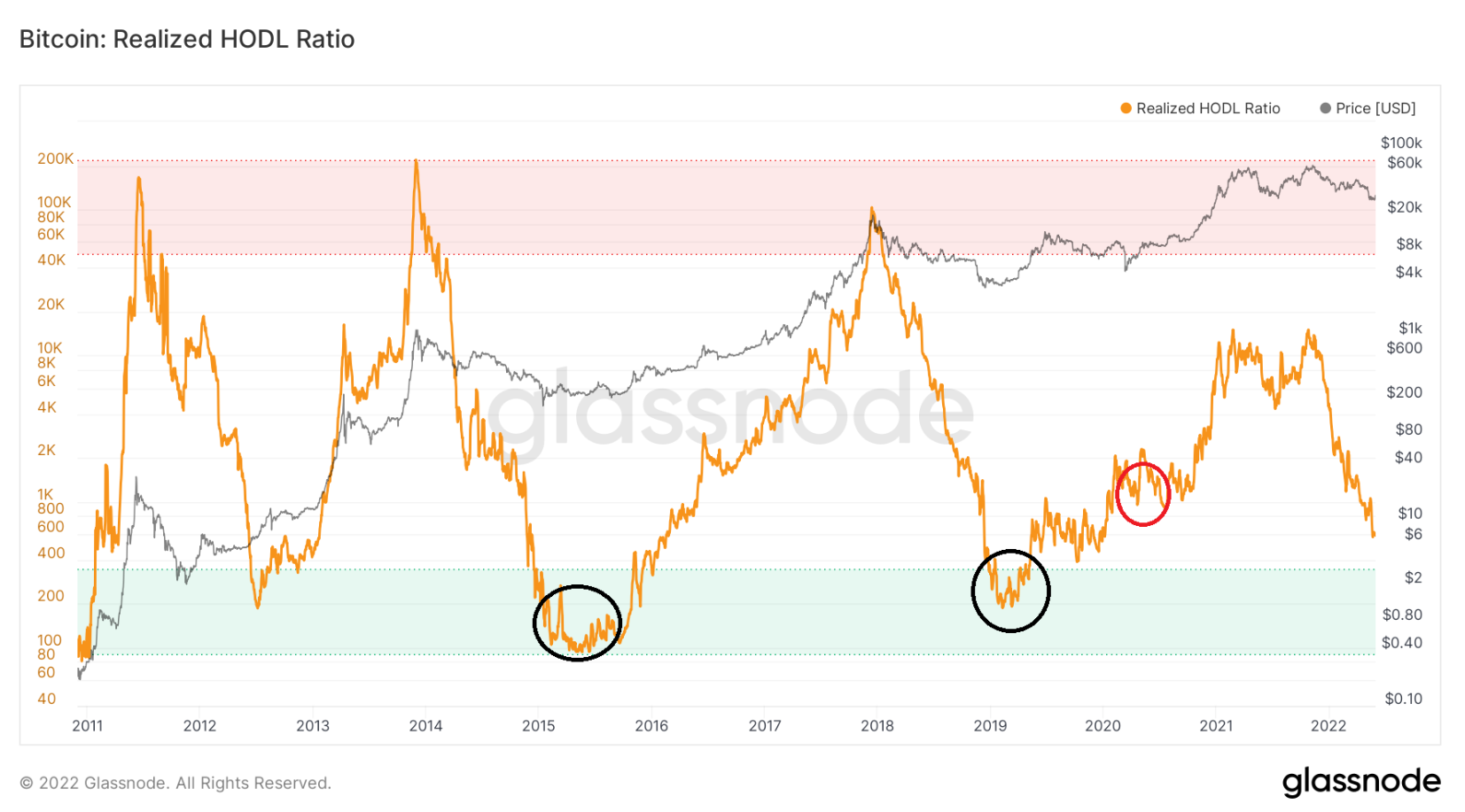 Tỷ lệ RHODL là tỷ lệ giữa dải sóng HODL 1 tuần và 1-2 năm. Một tỷ lệ cao cho thấy rằng những holder ngắn hạn đang nắm giữ một tỷ lệ lớn trong nguồn cung hiện tại.