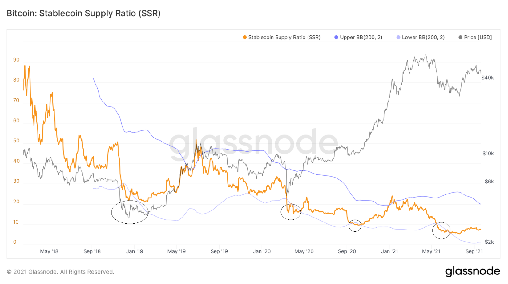 SSR đã giảm xuống mức thấp nhất mọi thời đại là 6 vào ngày 8 tháng 6. Theo tính toán trên, điều này có nghĩa là 16,66% (1/6) nguồn cung BTC có thể được mua bằng stablecoin vào thời điểm đó.