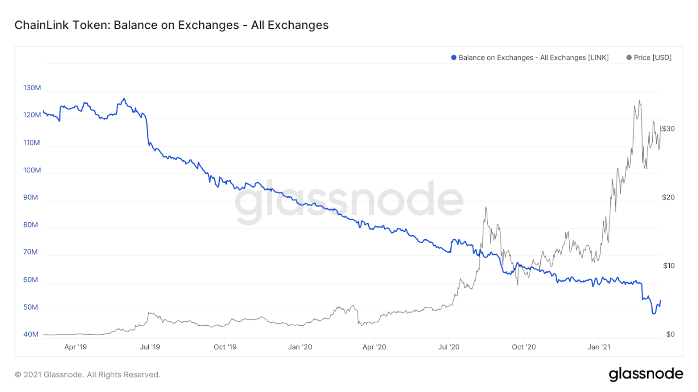 Số dư LINK trên các sàn giao dịch | Nguồn: Glassnode