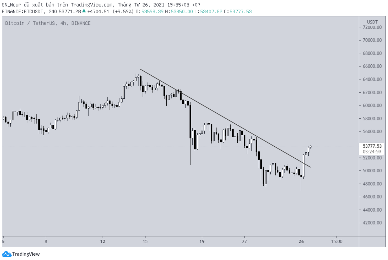 “Bật lên từ mức thấp và bây giờ Bitcoin có một sự phục hồi rất mạnh mẽ. Nó vẫn chưa ra khỏi rừng. Giành lại $ 55.500 là tất cả những gì cần làm để tiến lên mức ATH mới. Hiện tại, hãy chơi từng cấp độ. Phản ứng mạnh mẽ cho đến nay”.