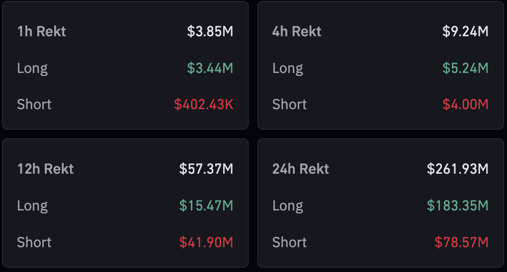 Trong bối cảnh thị trường tiền điện tử tiếp tục biến động, phe bò đã trải qua một ngày thanh lý lớn thứ hai trong tháng 10, khi giá Bitcoin mất đà kéo theo sự sụt giảm của nhiều đồng tiền lớn khác. Ngày 23 tháng 10, tổng giá trị thanh lý trong thị trường tiền điện tử đạt 261,9 triệu USD, chỉ đứng sau mức 450,8 triệu USD ghi nhận vào ngày 1 tháng 10, khi giá Bitcoin giảm khoảng 5% xuống 67.108 USD.