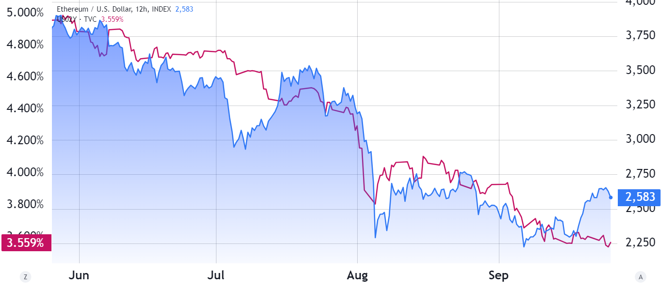Động lực chính thúc đẩy đà tăng giá của ETH là việc Cục Dự trữ Liên bang Mỹ cắt giảm lãi suất, báo hiệu sự chuyển hướng sang chính sách tiền tệ nới lỏng hơn. Điều này đã đẩy chỉ số S&P 500 lên mức cao kỷ lục vào ngày 24 tháng 9. Bên cạnh đó, chỉ số PMI sản xuất toàn cầu S&P giảm vào ngày 23 tháng 9, càng làm dấy lên lo ngại về sức khỏe của nền kinh tế.