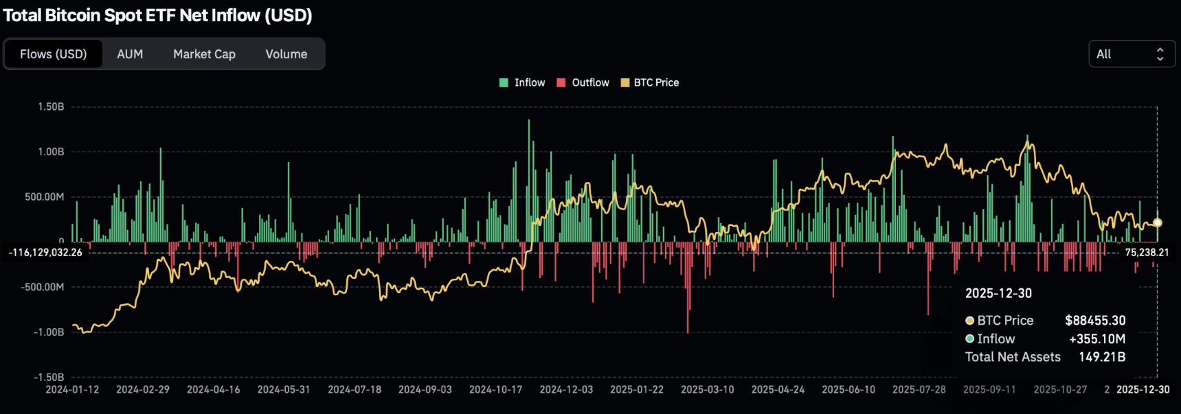 Tuy nhiên, bức tranh tâm lý đã bắt đầu thay đổi. Khoảng 335 triệu USD Bitcoin bất ngờ chảy ngược trở lại các quỹ ETF, ghi nhận ngày có dòng tiền vào lớn thứ ba kể từ ngày 21/10. Diễn biến này cho thấy áp lực bán từ khối tổ chức có dấu hiệu hạ nhiệt.