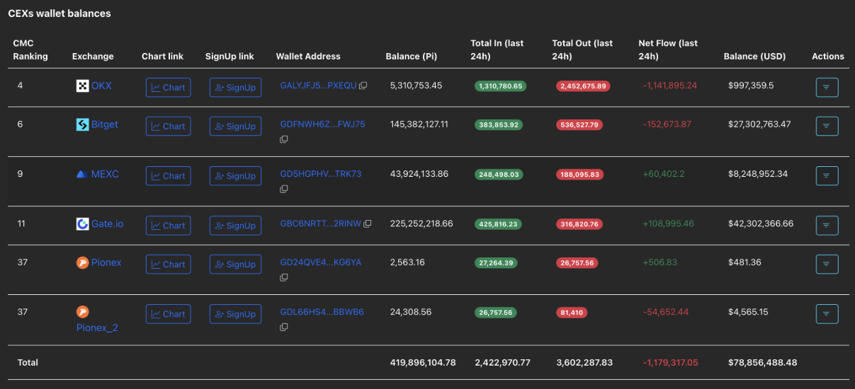 Thông báo này cũng đang “hâm nóng” nhu cầu từ giới đầu tư bán lẻ. Theo dữ liệu từ PiScan, chỉ trong 24 giờ qua, người dùng đã rút 1,17 triệu token PI khỏi các sàn CEX, dẫn đến dự trữ trong ví giảm và áp lực bán ra giảm bớt.