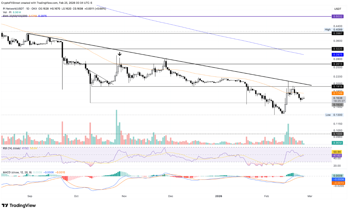 Trong kịch bản tiêu cực, nếu PI đánh mất vùng hỗ trợ quan trọng quanh 0,1538 USD, giá có thể đối mặt với nguy cơ quay trở lại đáy lịch sử 0,1300 USD, được thiết lập vào ngày 6/2. Đáng chú ý, các chỉ báo kỹ thuật trên khung thời gian ngày hiện vẫn cho thấy xu hướng giảm chiếm ưu thế.