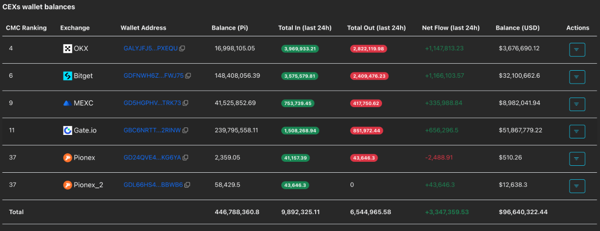 Dữ liệu dự trữ PI trên CEX | Nguồn: PiScan