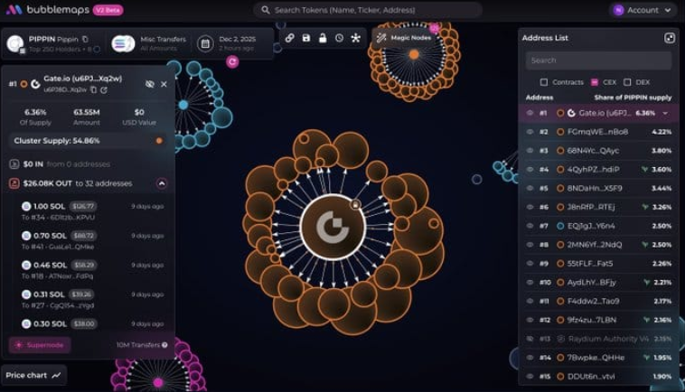 Đến ngày 2/12, BubbleMaps tiếp tục phát hiện diễn biến mới khi 26 địa chỉ đã rút tới 44% tổng nguồn cung PIPPIN khỏi sàn Gate chỉ trong vòng hai tháng, với tổng giá trị ước tính khoảng 96 triệu USD.
