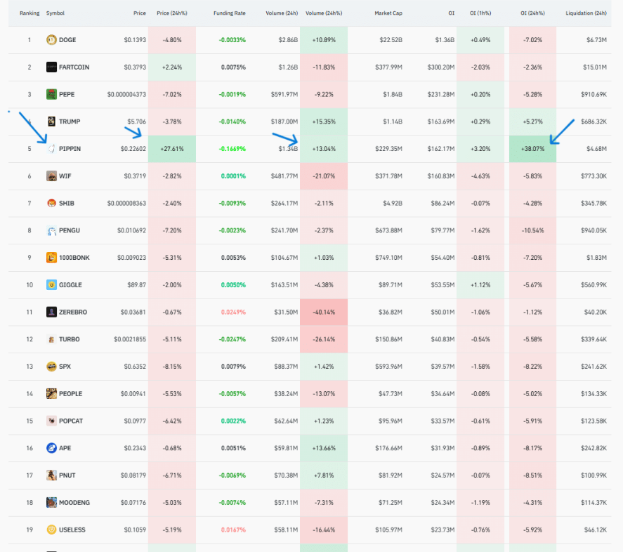 Trong vòng 24 giờ qua, pippin (PIPPIN) đã bứt phá ngoạn mục với mức tăng lên tới 59%, sau giai đoạn dài tích lũy âm thầm trong toàn bộ phân khúc memecoin. Vốn hóa thị trường của token này cũng bật tăng 33%, vươn lên 233,53 triệu USD từ vùng đáy quanh 22 triệu USD vào ngày 21/11, chính thức phá vỡ các biên độ dao động cũ với đà tăng ổn định.