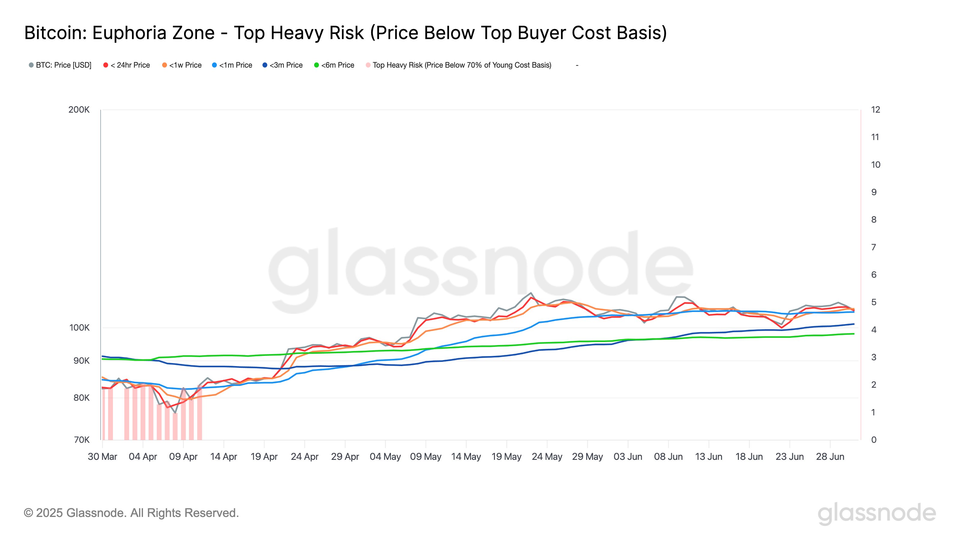 Dữ liệu từ Glassnode cũng xác nhận rằng các đợt điều chỉnh giá gần đây khá nông. Bitcoin vẫn giữ được trên mức giá trung bình trong 1 tháng là 105.100 USD. Nhóm nhà đầu tư ngắn hạn vẫn ghi nhận lợi nhuận, với giá mua trung bình dao động từ 98.100 đến 106.300 USD tùy khung thời gian.