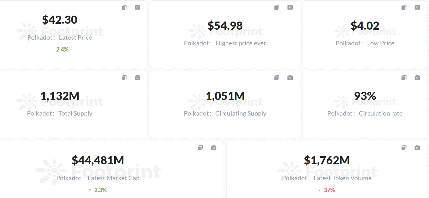 Các dữ liệu cơ bản hiện tại của Polkadot (kể từ tháng 11/2021) | Nguồn: Footprint Analytics