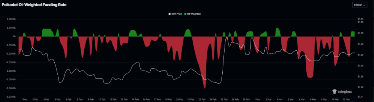 Cùng lúc đó, dữ liệu funding rate từ CoinGlass cũng củng cố triển vọng tích cực đối với Polkadot. Chỉ số này đã chuyển sang mức dương từ thứ Năm và tăng lên 0,0058% vào thứ Sáu, cho thấy các vị thế long đang trả phí cho short — tín hiệu quen thuộc phản ánh tâm lý thị trường nghiêng về kịch bản tăng giá.