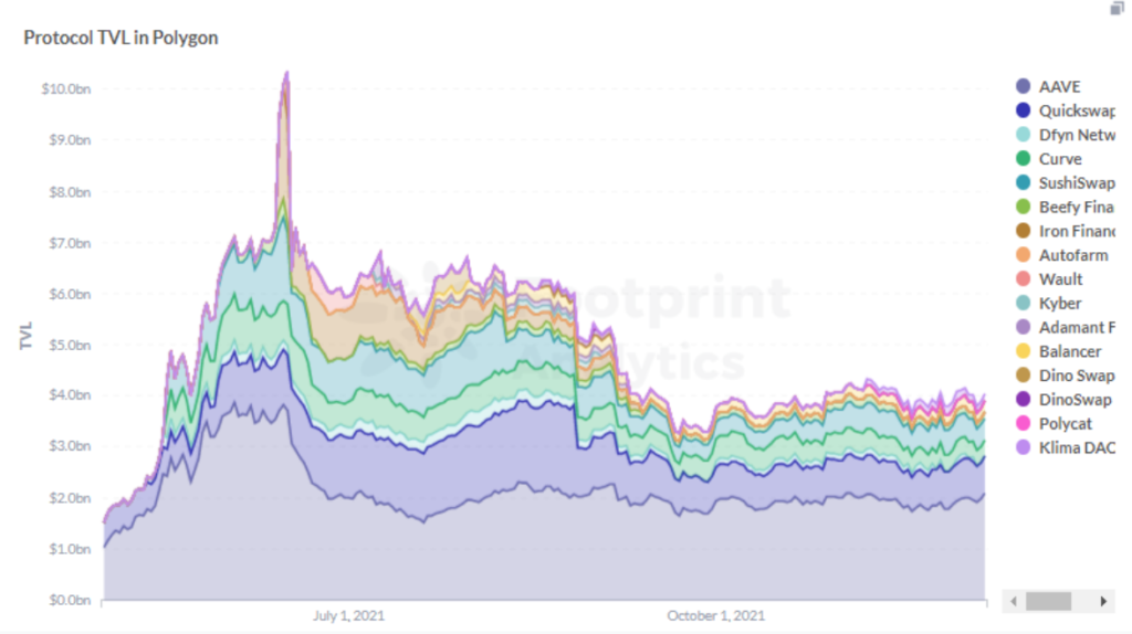 TVL của các giao thức trên Polygon | Nguồn: Footprint Analytics