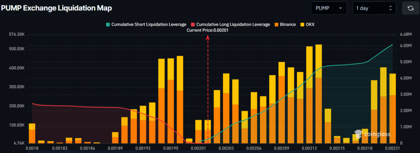 Trong trường hợp PUMP phá vỡ mô hình và đóng nến ngày dưới mốc 0,00196 USD, áp lực bán có thể đẩy giá giảm thêm khoảng 15%, đưa token này về vùng 0,00166 USD chỉ trong vài ngày tới.