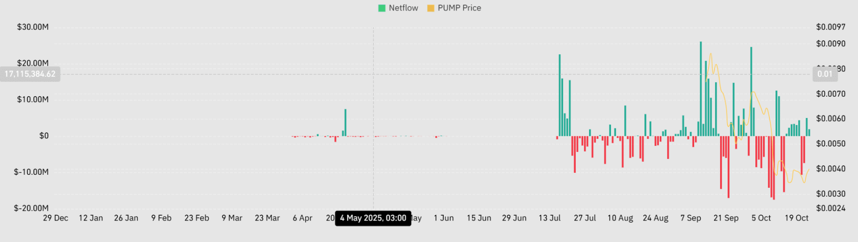 Cùng thời điểm, chỉ số Whale Net Buy của PUMP cũng bật tăng lên 4,6 tỷ token, củng cố thêm tín hiệu về làn sóng gom hàng mạnh mẽ từ giới cá voi.