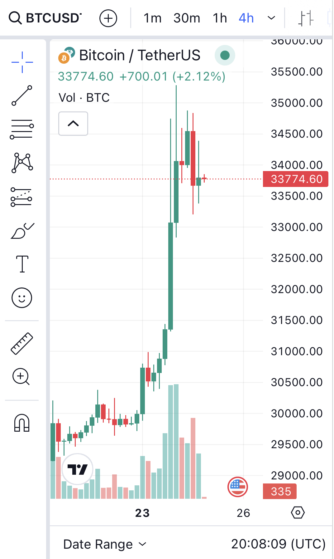 Sự xuất hiện của quỹ trong danh sách với mã IBTC đã được thị trường chú ý rộng rãi vào thứ Hai và mở đường cho một đợt tăng giá chứng kiến đồng tiền điện tử lớn nhất thế giới theo vốn hóa thị trường tăng lên 35.000 đô la, mức cao nhất kể từ tháng 5 năm 2022.