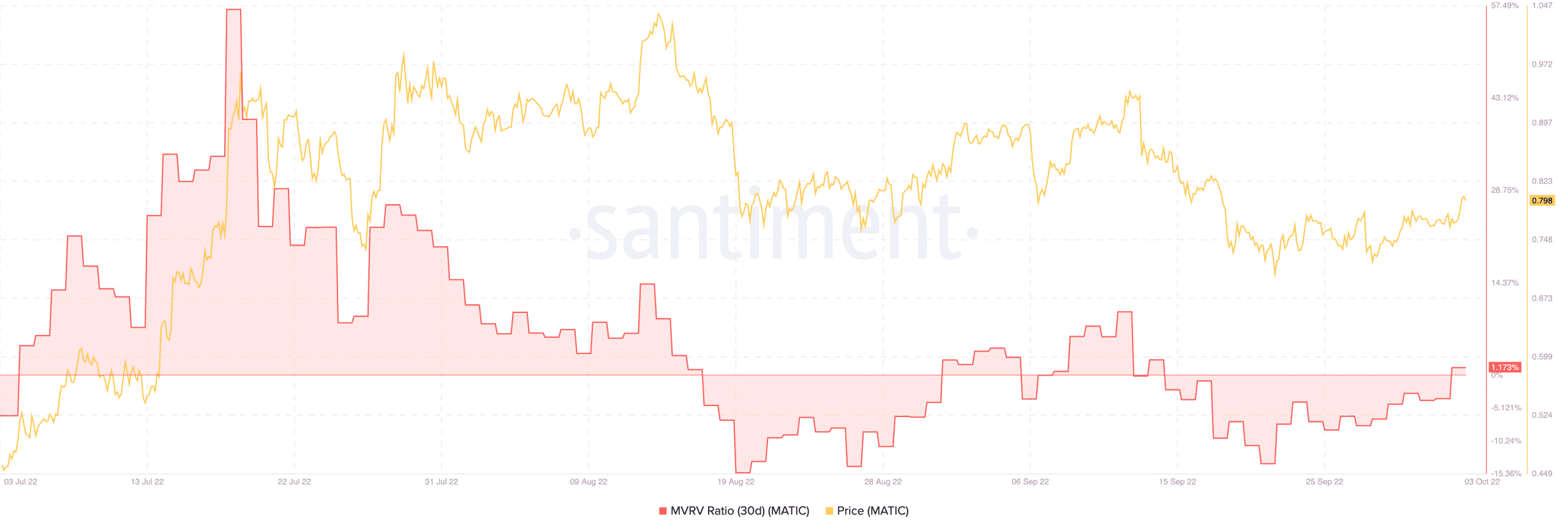 Dựa trên dữ liệu của Santiment, các nhà đầu tư MATIC có lẽ đang chuẩn bị nắm bắt nhiều đặc điểm tăng giá hơn. Điều này là do tỷ lệ Giá trị thị trường trên Giá trị hợp lý (MVRV) dường như sẵn sàng bỏ lại phía sau hiệu suất khủng khiếp trong tháng 9. Theo nền tảng phân tích, MVRV của MATIC là 1,924%.
