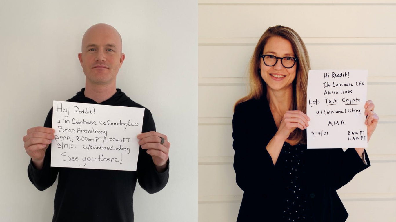 AMA (Hỏi tôi tất cả mọi thứ) được đăng vào ngày 17 tháng 3 đã thu thập được hơn một nghìn câu hỏi và phản hồi từ các thành viên của Reddit. Giám đốc điều hành Brian Armstrong và Giám đốc tài chính Alessia Haas cuối cùng đã phản hồi một vài người trong số họ sau một tuần vào hôm nay.
