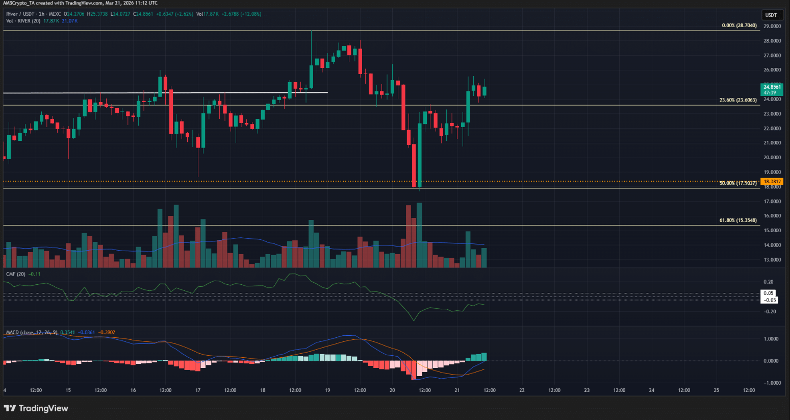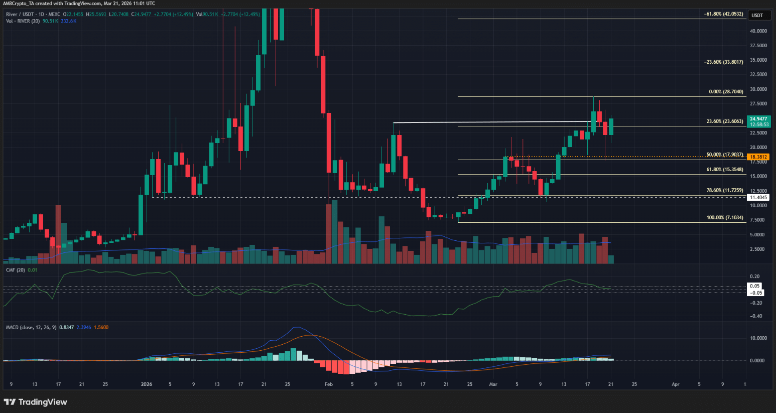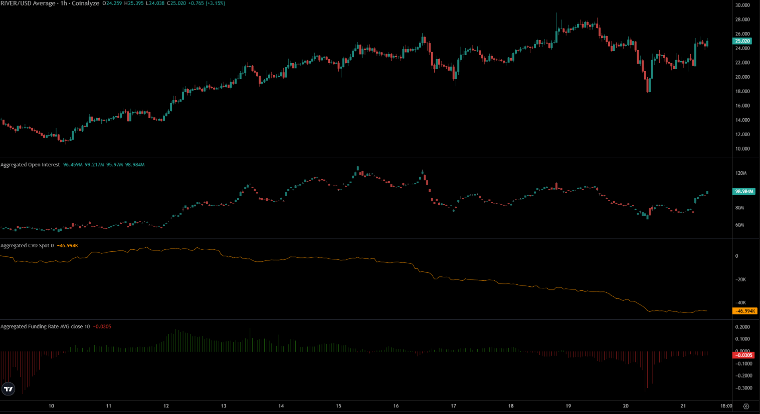 Đà tăng mạnh trong ngắn hạn cùng sự tham gia của dòng tiền đầu cơ không phải lúc nào cũng đảm bảo một xu hướng bền vững. Tuy nhiên, trong trường hợp của RIVER, phe bò đang cho thấy dấu hiệu dần lấy lại quyền kiểm soát thị trường.