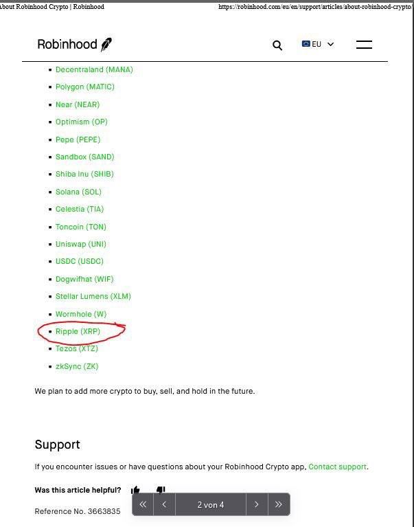 XRP xuất hiện trên trang danh sách các token được hỗ trợ của Robinhood.