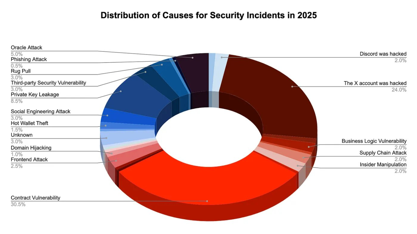 Các nền tảng tài chính phi tập trung (DeFi) liên quan đến 126 sự cố, chiếm 63% tổng số vụ việc với 649 triệu USD thiệt hại. Ngược lại, các nền tảng tập trung chỉ ghi nhận 12 sự cố nhưng thiệt hại lớn hơn nhiều, tổng cộng 1,809 tỷ USD, trong đó có 1,46 tỷ USD từ Bybit. Báo cáo nhấn mạnh rủi ro tài chính ngày càng tăng trong hệ sinh thái blockchain, bất chấp số vụ tấn công giảm, cho thấy nhu cầu cấp thiết về các biện pháp bảo mật mạnh hơn cho cả DeFi và nền tảng tập trung.