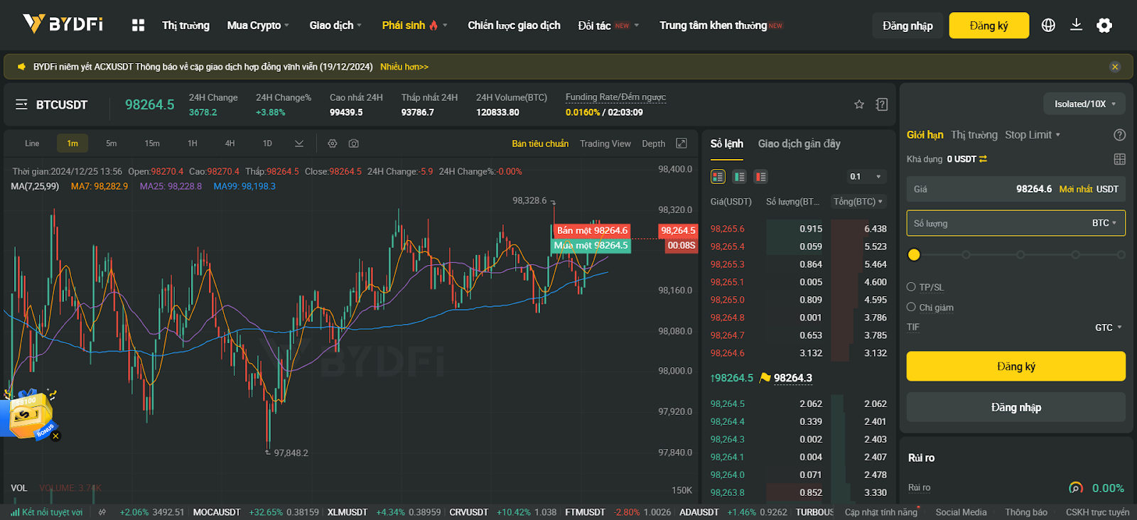 Được Forbes vinh danh là Top 10 Sàn giao dịch tiền điện tử tốt nhất, BYDFi được hàng triệu người dùng trên toàn thế giới tin tưởng và được các phương tiện truyền thông có thẩm quyền hàng đầu trong ngành công nhận, như CoinMarketCap và CoinGecko. Hiện tại, BYDFi hỗ trợ hơn 600 token để giao dịch giao ngay, với các tùy chọn đòn bẩy từ 1x đến 200x phù hợp với mọi chiến lược đầu tư. Việc tích hợp với các nhà cung cấp dịch vụ thanh toán toàn cầu hàng đầu, bao gồm Banxa, Transak và Mercuryo, giúp dễ dàng mua tiền điện tử, giúp có thể đầu tư vào tiền điện tử với chi phí thấp.