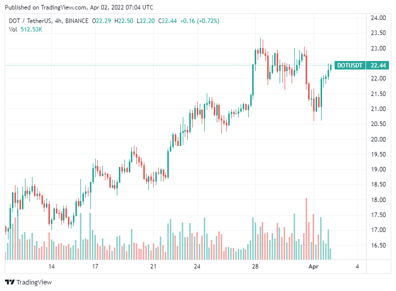 Cuối cùng, anh cho biết Polkadot (DOT) đang tiến gần hơn một bước tới việc được thị trường chính thống tiếp nhận rộng rãi. Dự đoán của Arnold dựa trên tin tức parachain Acala và Karura sẽ kết nối Polkadot và Kusama với cầu đa chuỗi Wormhole. Theo đó, bản nâng cấp sẽ giúp DOT có thể tương tác với hầu hết các blockchain layer 1, chẳng hạn như Ethereum và Solana.