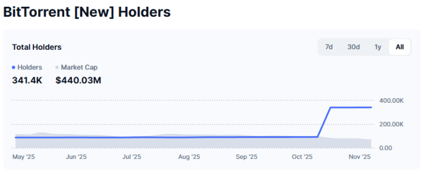 Số lượng holdrer của BitTorrent | Nguồn: CoinmarketCap.