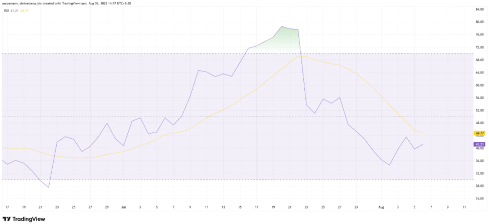Tâm lý chung của thị trường dường như cũng đang tác động đến SHIB. Chỉ số sức mạnh tương đối (RSI) hiện đang nằm trong vùng giảm giá, dưới ngưỡng trung lập 50.0.
