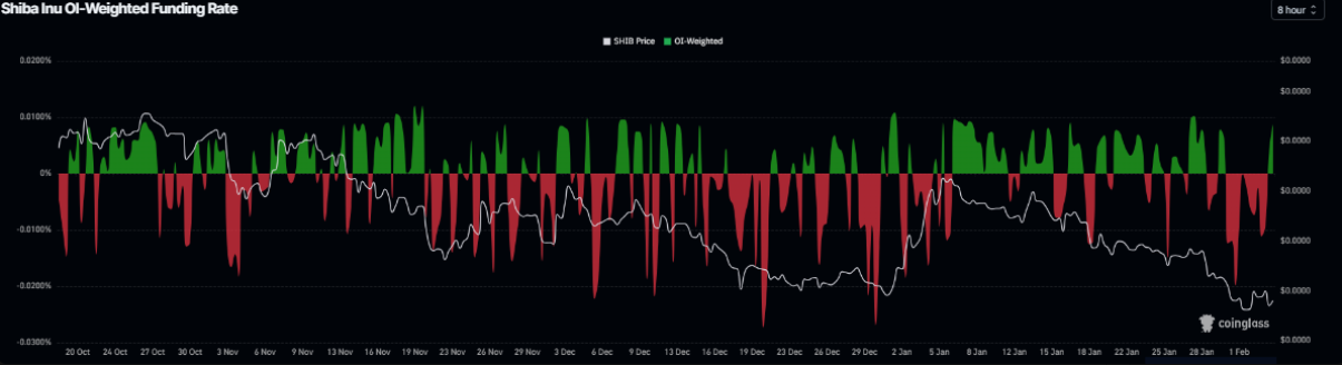 Ở chiều tương tự, thị trường phái sinh cũng phát đi thông điệp thận trọng. Dữ liệu từ CoinGlass cho thấy funding rate của SHIB đã đảo chiều sang dương vào thứ Tư, đạt 0,0088%, hàm ý các vị thế mua (long) đang chấp nhận trả phí cho vị thế bán (short) và phần nào phản ánh kỳ vọng lạc quan.