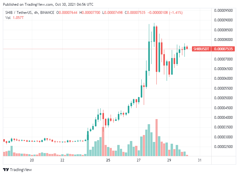 Biểu đồ giá SHIB 4 giờ | Nguồn: Tradingview