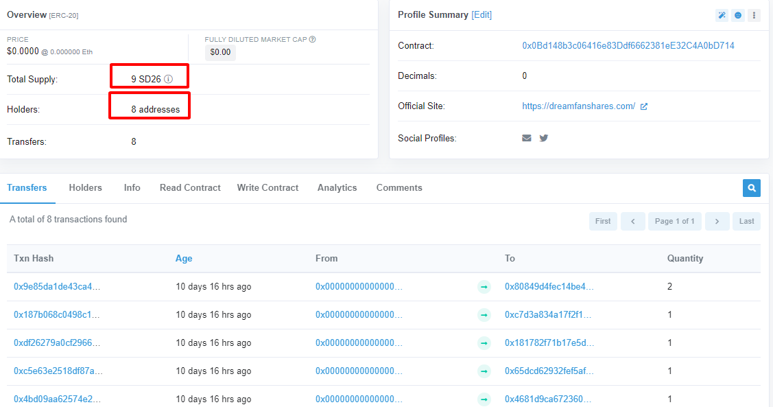 Dữ liệu của Etherscan chỉ ra rằng chỉ có 8 nhà đầu tư tham gia chào bán và Dinwiddie chưa thừa nhận kết luận bán hàng trên Twitter.