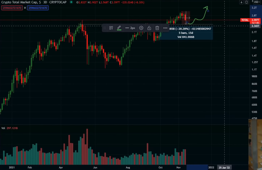 “Thị trường đang hướng đến đâu? Tôi nghĩ rằng sẽ hướng tới phạm vi 2,4 nghìn tỷ đô la trong tổng vốn hóa thị trường tiền điện tử. Một sự điều chỉnh đầy đủ, tốt đẹp, sạch sẽ, 20%”.