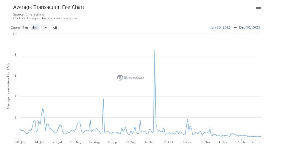 Trước đây, phí giao dịch Ethereum từng đạt đỉnh vào tháng 5/2022, vượt 200 USD cho mỗi giao dịch. Tuy nhiên, các đợt nâng cấp liên tục đã giúp chi phí giảm mạnh, ngay cả khi hoạt động trên mạng vẫn không ngừng mở rộng. Kể từ ngày 10/10, khi phí ở mức 8,48 USD trong bối cảnh thị trường thanh lý mạnh, chi phí giao dịch đã liên tục đi xuống.