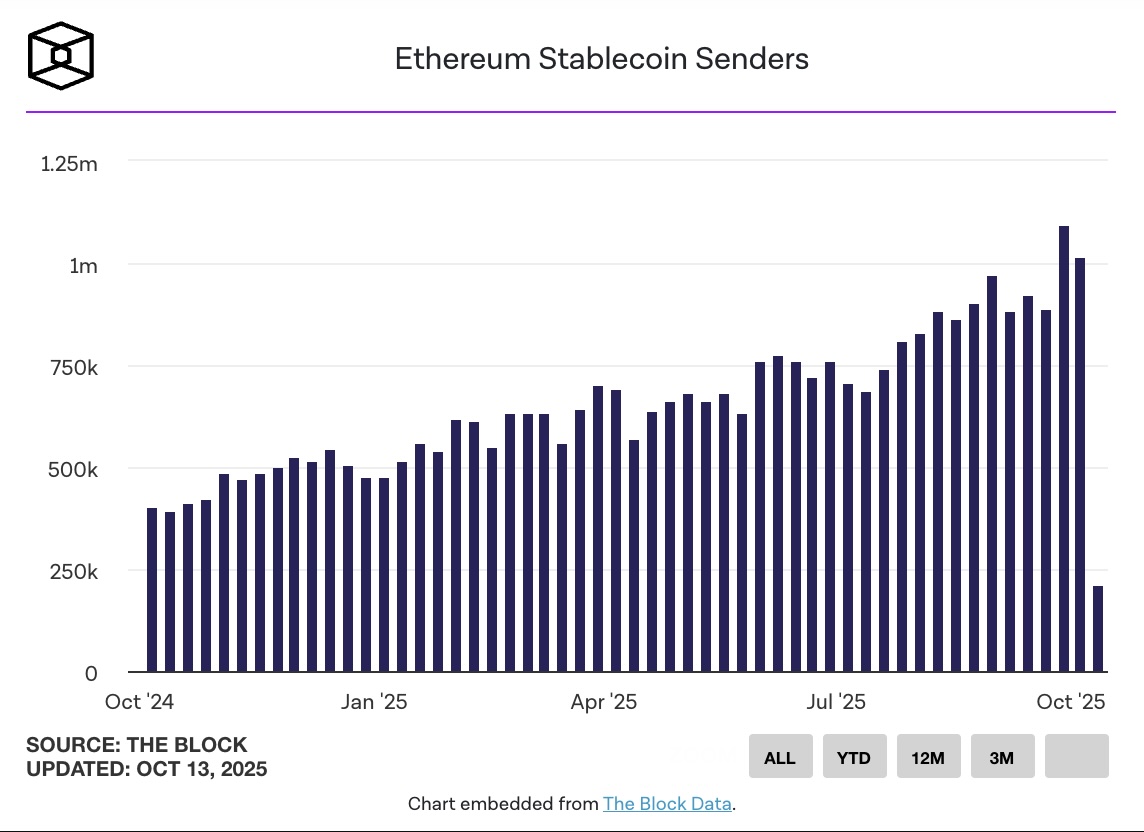 Bước sang năm 2025, trung bình mỗi tuần có khoảng 720.000 người gửi stablecoin độc nhất trên Ethereum. Riêng trong hai tuần gần đây, con số này đã vượt mốc 1 triệu người gửi mỗi tuần.