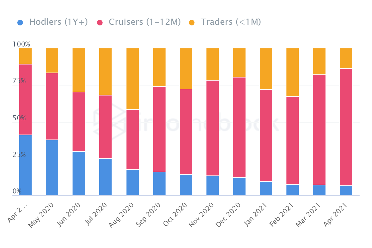 Trong trường hợp của MATIC, quý 1 đã chứng kiến sự gia tăng gần 100% hodler dài hạn, những người đã chôn chân trong hơn một năm. Theo dữ liệu từ IntoTheBlock, các địa chỉ tồn đọng trong hơn một năm đã tăng từ khoảng 1,7 nghìn địa chỉ vào tháng 12 năm 2020 lên hơn 3,3 nghìn địa chỉ trong tháng 4. Đối với nhiều altcoin, điều này đánh dấu một sự chuyển đổi thú vị trong nhân khẩu học cốt lõi của nó vì có một chút thay đổi từ lợi ích ngắn hạn sang cách tiếp cận dài hạn hơn.