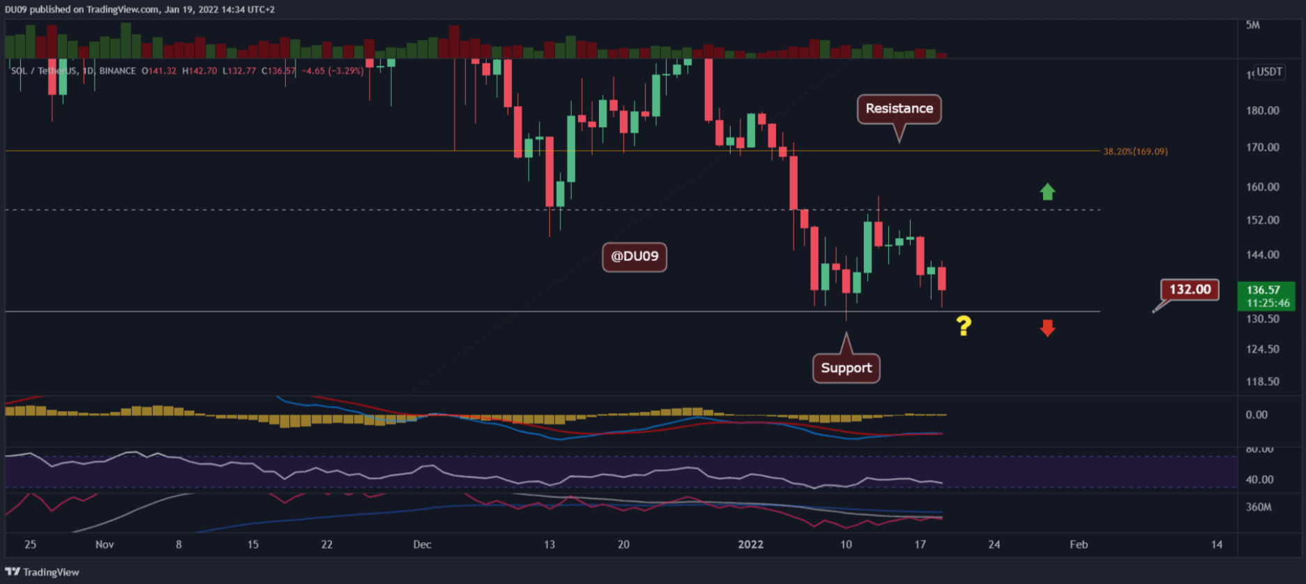 Xu hướng hiện tại là giảm. Tuy nhiên, phe bò có cơ hội để đẩy SOL lên cao hơn từ mức hỗ trợ quan trọng khi người bán có vẻ thiếu quyết đoán khi xem xét khối lượng giao dịch. Do đó, việc duy trì trên $ 130 trong một vài ngày sẽ gợi ý rằng giá có thể kiểm tra lại mức kháng cự $ 155 một lần nữa.