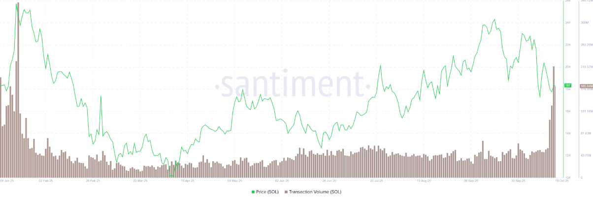 Biểu đồ khối lượng giao dịch Solana | Nguồn: Santiment