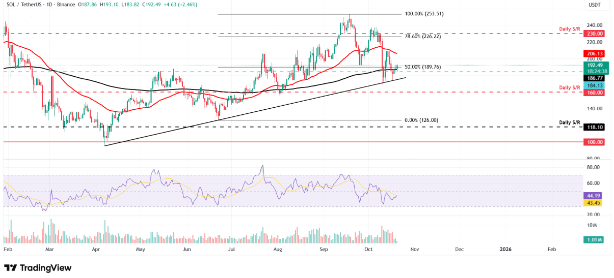 Ngược lại, nếu áp lực điều chỉnh gia tăng, SOL có thể quay lại kiểm tra vùng hỗ trợ quanh đường xu hướng tăng tại 186 USD.