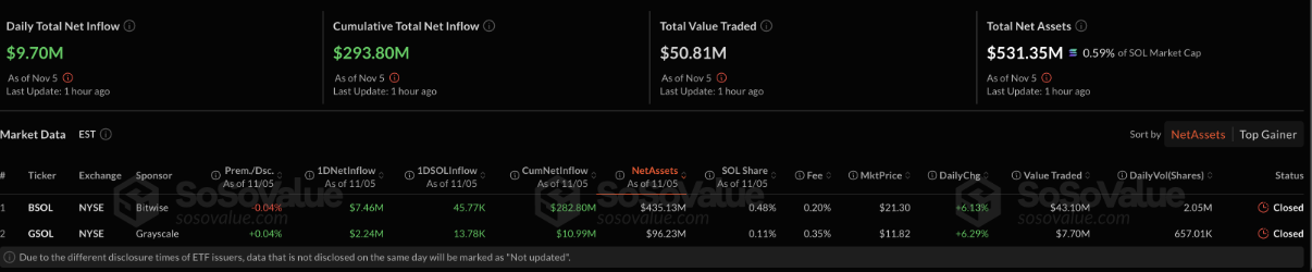 Quỹ ETF Solana | Nguồn: Sosovalue